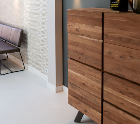 Toch zitten er ook enkele nadelen verbonden aan een cementgebonden gietvloer met betonlook. Door de poreuze structuur bestaat er een kans op scheurvorming. Daarom raden wij je aan om de cementgebonden gietvloer te voorzien van een coating van kunsthars, zoals polyurethaan. Hiermee voorkom je verkleuring, vlekvorming en stoot je vuil en vloeistoffen af waardoor de vloer gemakkelijk is in onderhoud.